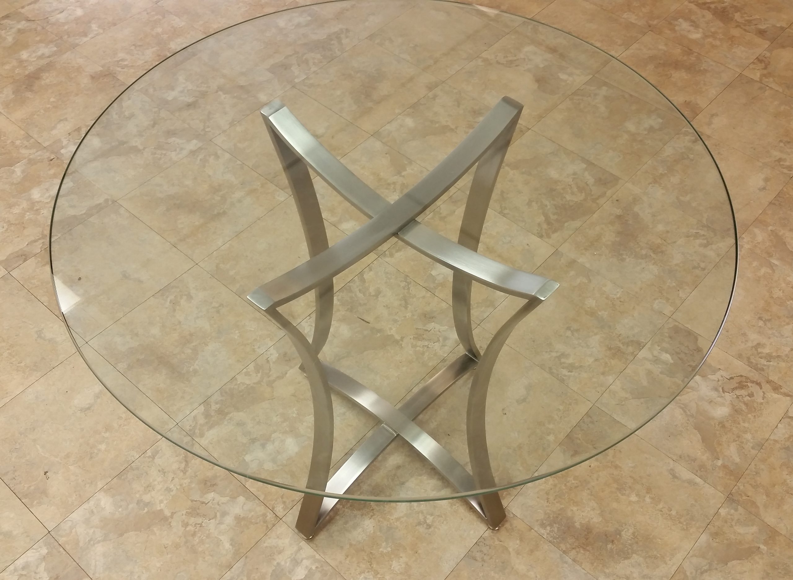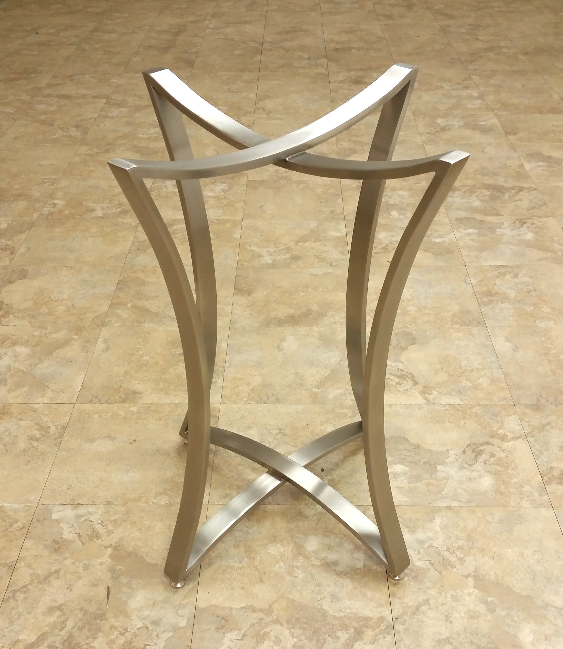 One of our exciting new designs is our one-of-a-kind Neptune round table base, fabricated with stainless steel bars in a brushed finish. These contemporary table legs are fully welded with all welds polished seamlessly, and sold independently without a table top. We manufacture these modern Neptune table bases in our Chicago area metal shop and ship to anywhere in the continental U.S.A.! Please contact us for a factory direct quote today, and be sure to let us know what size table top you plan to use.