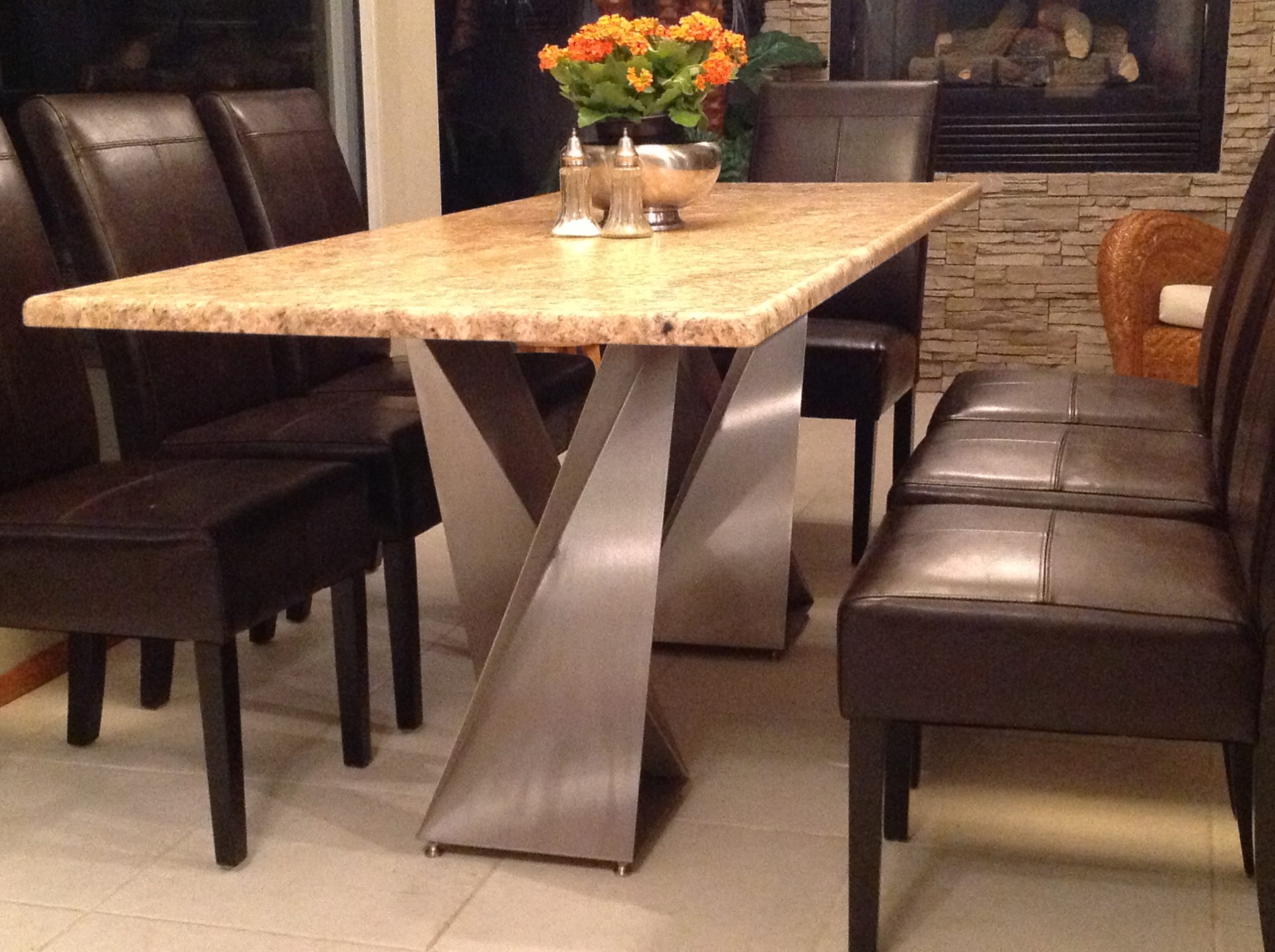 Our originally designed twisted metal table legs are versatile pieces fabricated with premium 14 gauge stainless steel in a variety of sizes and finishes.  We manufacture them in our Chicago area metal shop, and ship to anywhere in the continental U.S.A.!  For printable product details and a guide to choosing the best size Twist Metal X Table Base(s) for several standard size tops, please download the product specification document on the next tab.  Don’t hesitate to contact us with general questions or for help choosing the right size base(s) for a certain table top.  We would also be happy to give you a quote to fabricate a twisted heavy-duty table base in a custom size or custom color.